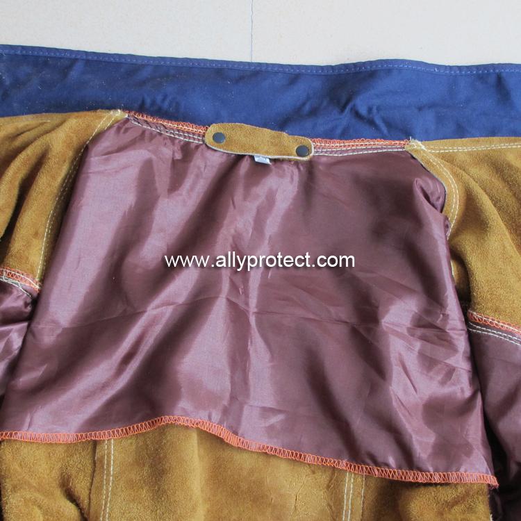 - 產(chǎn)品描述: 精選耐磨、柔韌的牛二層皮,由杜邦Kevlar?防火線雙線縫制而成。緞面料肩部內(nèi)里,便于穿戴。 立領(lǐng)安全設(shè)計。適用于高強(qiáng)度焊接,抵擋電焊火花飛濺,降低電焊輻射對皮膚的傷害,保護(hù)作業(yè)安全。
